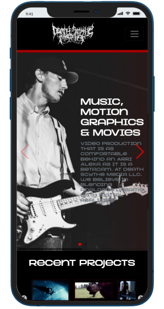 The DSM website project was built on React JS using the Reactstrap framework, as well as several libraries. This site was designed and developed in-house for an alternative media company called Death Scythe Media.