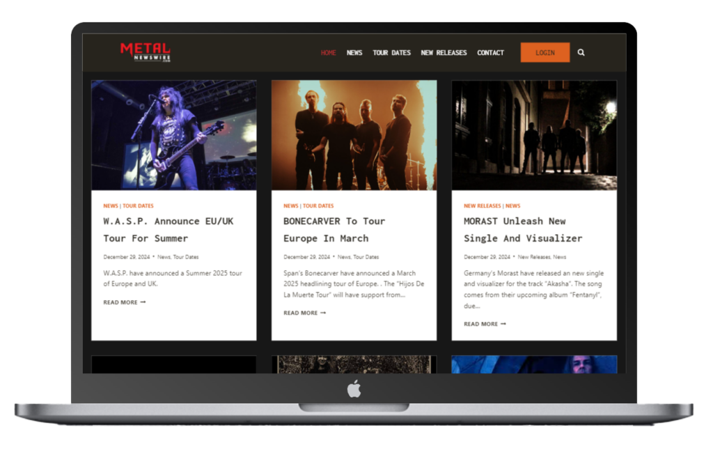 Metal Newswire Blog This blog runs off of a WordPress app. This site features custom theme edits and full social media cross post integration (with the exception of X), as well as Google Site Kit metrics. All branding, design and development was handled in-house. View Site